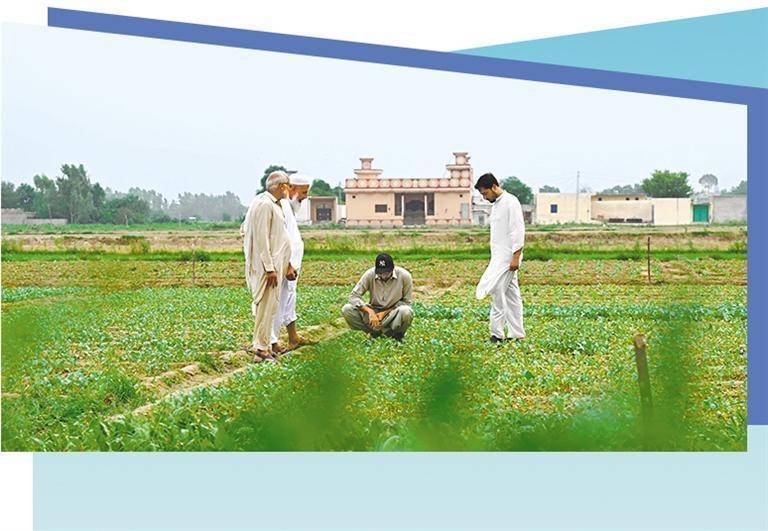 在巴基斯坦东部旁遮普省阿塔克县,巴基斯坦农业技术人员查看农田中引进自中国天津的花椰菜苗。 (新华社发)